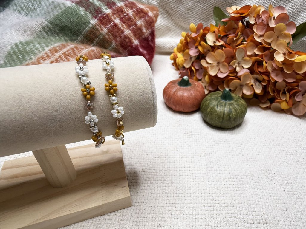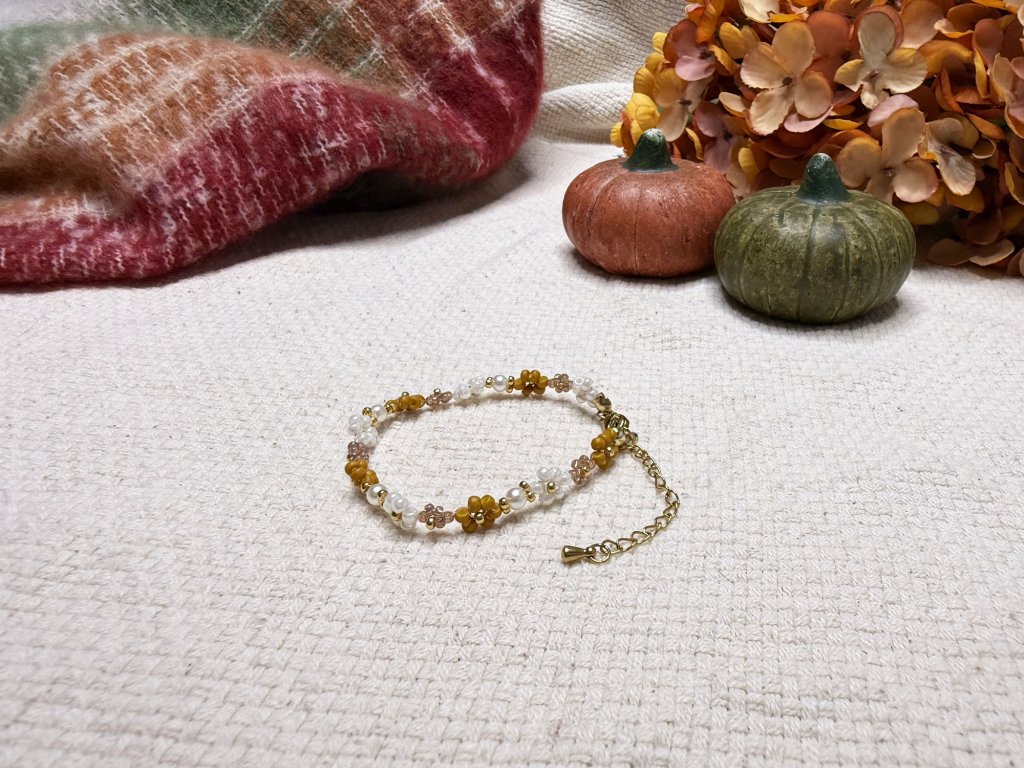 Ručně vyráběný květinový náramek Podzimní ráno z kvalitních japonských korálků MIYUKI – jemnost probouzejícího se dne