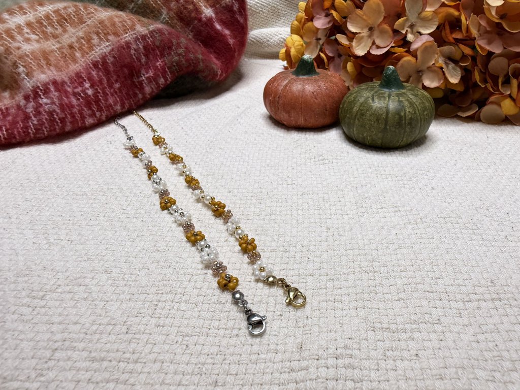 Podzimní ráno má v sobě kouzlo nového začátku – chladivý vzduch, zlatavé paprsky prvního slunce a tichou krásu, která hladí duši. Tento náramek je inspirován právě těmito okamžiky. Teplé tóny se prolínají s něžnou bílou a vytvářejí harmonii, která připomíná klidný start dne. Je ideální pro ty, kdo chtějí mít u sebe malou připomínku toho, že každý den může začít jemně a s nadějí.