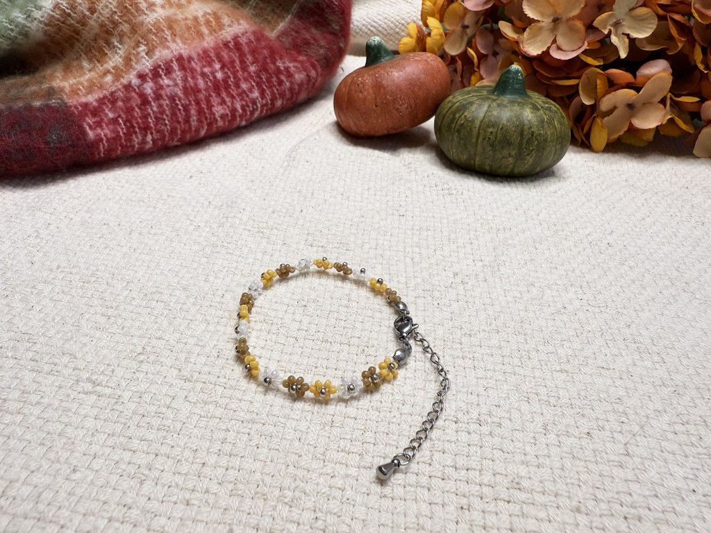Ručně vyráběný květinový náramek Pumpkin spice z kvalitních japonských korálků MIYUKI – hřejivý dotek podzimu